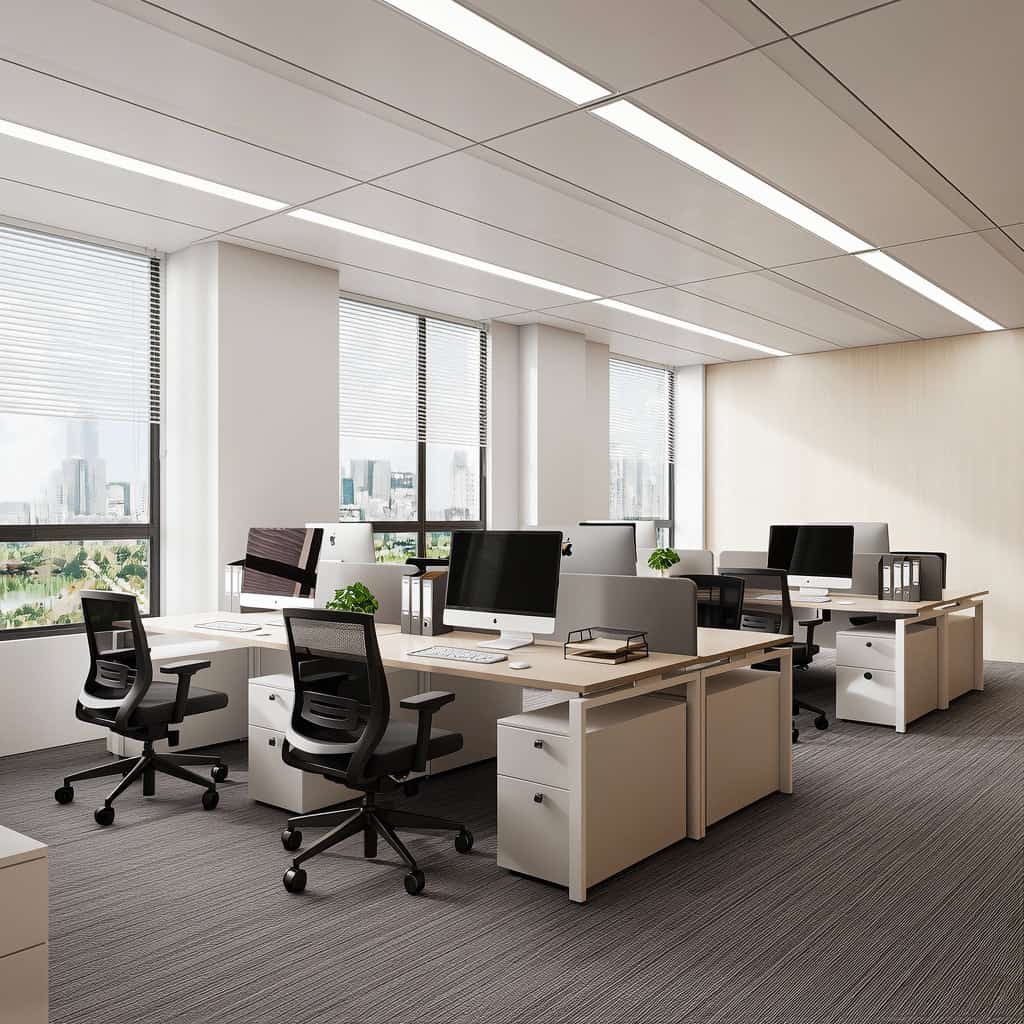 为了进一步支持绿色办公,该项目还在室内选用了环保建材和家具。办公室内的地板、墙面、天花板等都采用了低VOC(挥发性有机化合物)涂料,减少了空气中的有害物质。此外,家具的选择也注重绿色环保,许多家具选用了可再生材料或经过认证的环保材料,确保不会对室内空气质量造成负面影响。这些细节不仅提升了室内环境的健康性,也为员工提供了一个更加舒适、安全的工作空间。